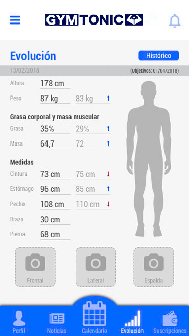 Tus clientes podrán llevar el seguimiento de su evolución física, marcándose objetivos personalizados.